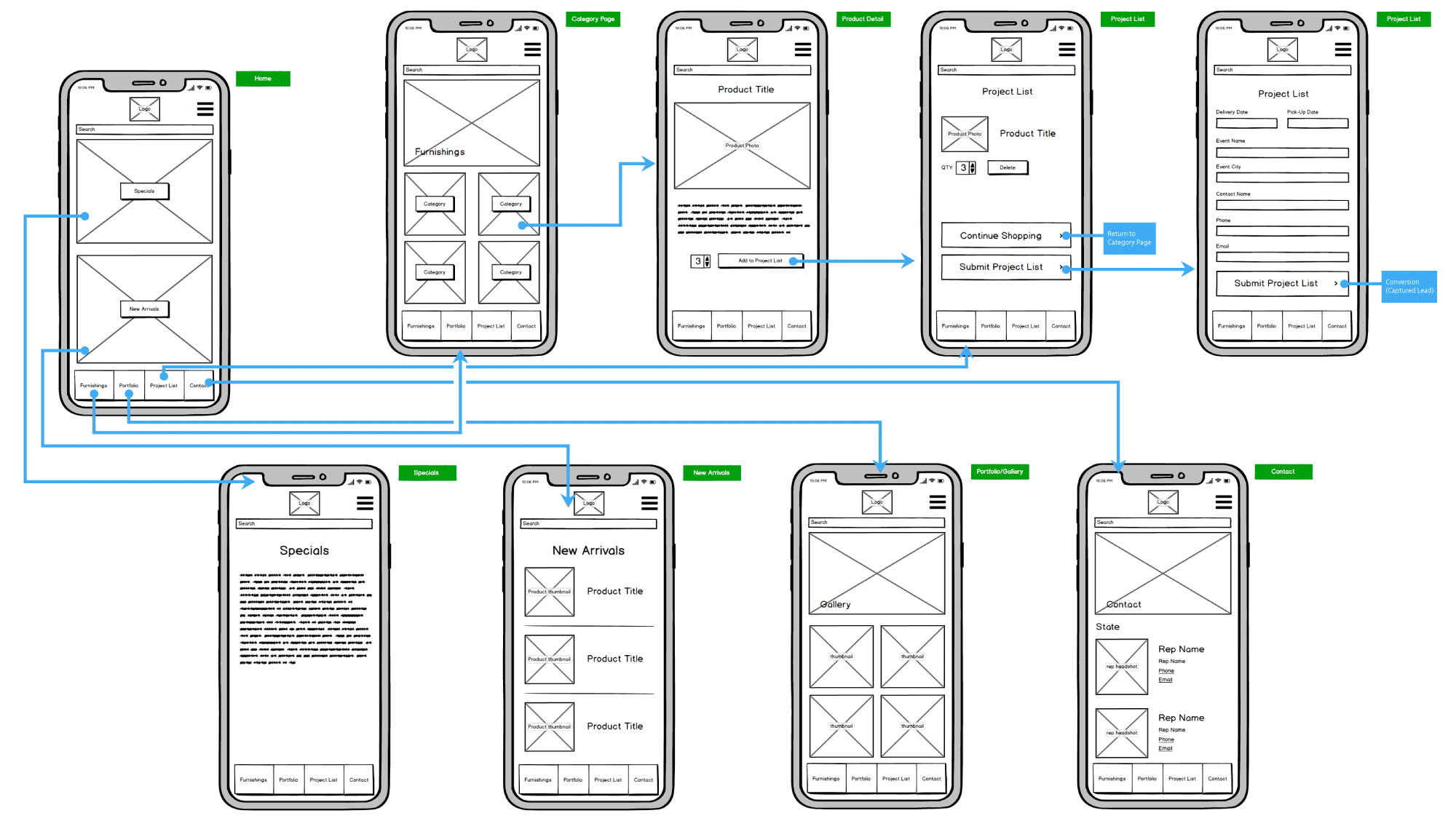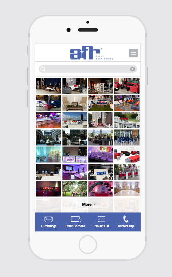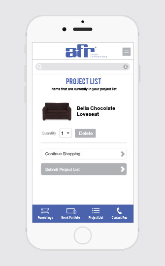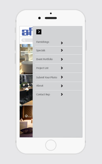 Creation of design and experience of app for AFR Furniture Rental's event furnishings collections.