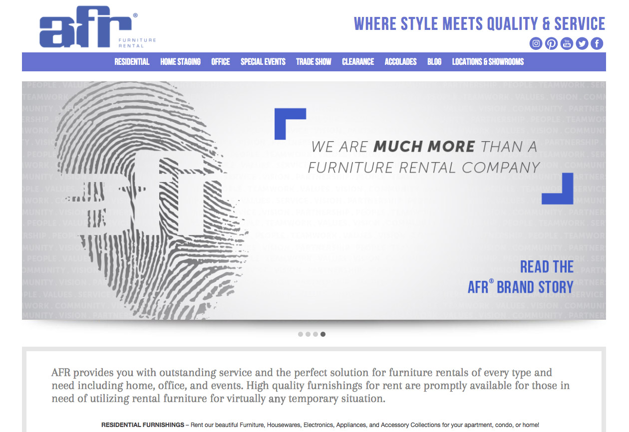 The nation’s second largest furniture rental company and provides solutions for residential, home staging, commercial, special events and trade shows.